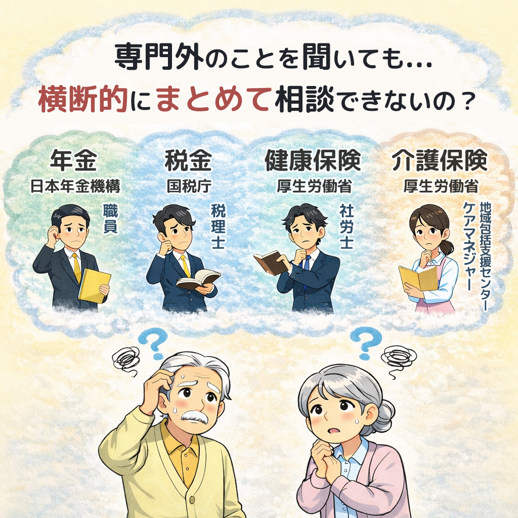 日本は縦割り行政であるため、税金、社会保険料、介護保険料、医療費、介護サービス費用といった公的支出を横断的に相談できる専門家がいませんでした。