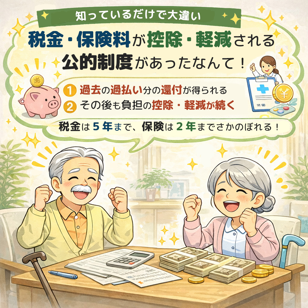過去の過払い分の還付は、税金なら過去5年分、保険なら過去2年分遡れますので、大きな金額が還付される可能性があります。
